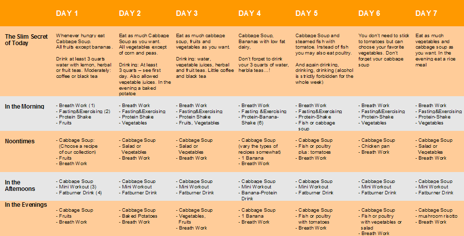 Cara dan jurnal .The 3-Hour Diet menawarkan rencana 28 hari cara diet untuk sukses, Termasuk tambahan olahraga yang bisa mempercepat turun berat badan (meskipun olahraga tidak merupakan syarat untuk diet ini)