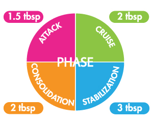 - Fase 3, adalah fase sebelum perawatan (fase 4), Bila turun berat badan anda kurang dari 5 kg dari goal anda, anda bisa menambahkan karbohidrat sehat dalam menu harian anda, sambil memantau berat badan dan belajar untuk merawat dan mempertahankan berat badan anda.